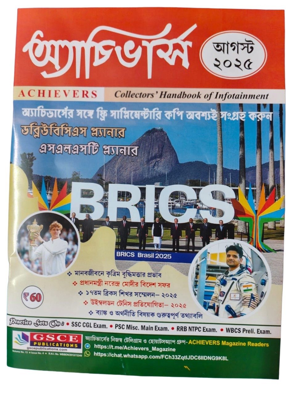 Achievers August-2025 Issueย  consist of practice set with explanations: RRB NTPC, SLST,ย  WBCS (Prelims), SSC CGL Exams, PSC Misc Main Exams