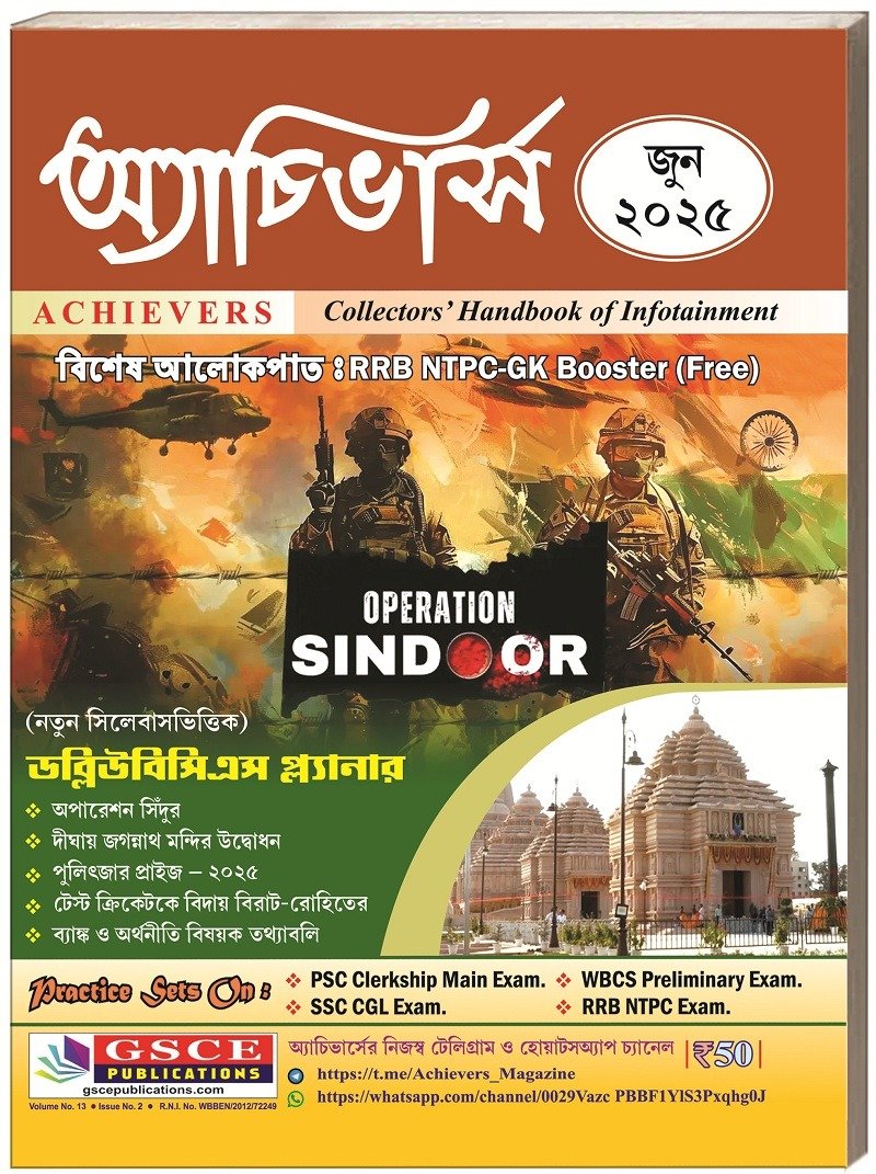 Achievers June-2025 Issueย consist of practice set with explanations:ย PSC Clerkship Main Exam, RRB NTPC, WBCS (Prelims), SSC CGL (Prelims).
